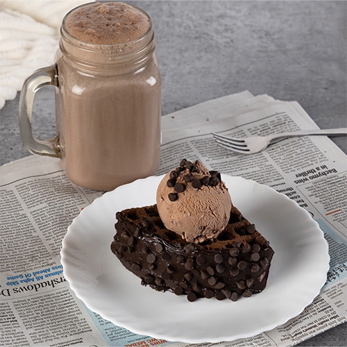 Can’t pick between waffles and shakes? Have both — 1 Choco Chips Ice Cream Waffle with 1 creamy Chocolate Shake.